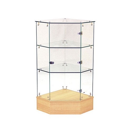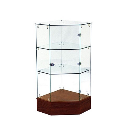 This Beautiful Store Fixture Glass Display Case Offers A Clean Futuristic Look With Frame Less All Glass Feature Gives More Exposure For Your Products. The Pentagon Corner Glass Display Case Is Great For All Types Of Products, and is Great For Personal Home Use To Display Art And Crafts, Collectibles, China Ware, Antiques, Sports Memorabilia. It can Be Used For Your Commercial Retail Business To Display Valuable Merchandise. The All Glass Frame Less Features Gives This Store Fixture The Ability To Be Placed Against The Wall For Space Saving. All Our Corner Cases and Corner Fillers Go Great With All The Frameless Series Showcases. Make Your Kiosk Complete By Adding This Beautiful Store Fixture To Existing Frameless Series Showcases