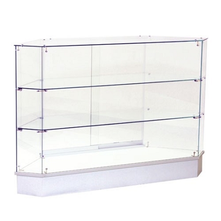 This Beautiful Store Fixture Glass Display Case Offers A Clean Futuristic Look With Frame Less All Glass Feature Gives More Exposure For Your Products. The Pentagon Corner Glass Display Case Is Great For All Types Of Products, and is Great For Personal Home Use To Display Art And Crafts, Collectibles, China Ware, Antiques, Sports Memorabilia. It can Be Used For Your Commercial Retail Business To Display Valuable Merchandise. The All Glass Frame Less Features Gives This Store Fixture The Ability To Be Placed Against The Wall For Space Saving. All Our Corner Cases and Corner Fillers Go Great With All The Frameless Series Showcases. Make Your Kiosk Complete By Adding This Beautiful Store Fixture To Existing Frameless Series Showcases